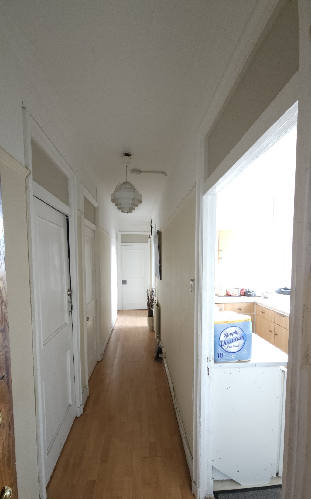 A spacious and bright 4-bedroom apartment with a shared kitchen and bathroom.