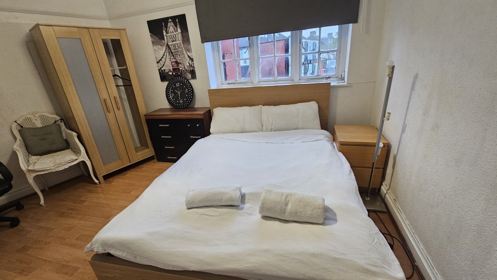 The double room consists of a double bed, wardrobe, study table, and chest of drawers. There is a shared bathroom and kitchen with a cooking & washing facility on the property. There is wi-fi, central heating, and hot water. The room is located right in front of Edgware Station takes…
