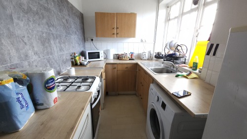 There is a shared kitchen with a cooker, washing machine, fridge freezer, and bathroom.